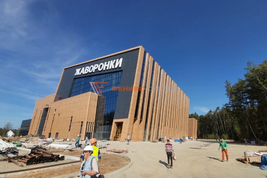 Компания «Прогресс-Групп» стала поставщиком кассет для реализации проекта по строительству Центра акробатического рок-н-ролла в с. Жаворонки Одинцовского района. Изготовление проводилось на собственных производственных мощностях из алюминия толщиной 2.0 мм. Объём поставки составил 4 000 м2. Особенность проекта заключалась в том, что в поставку входили металлокассеты сложных форм: трапециевидные, декоративные карнизы и пилоны, а также алюминиевые ламели.