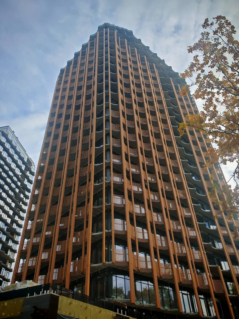 Компания «Прогресс-Групп» приняла участие в проекте группы «Эталон» по строительству ЖК «Башни Токио». Мы занимались производством и поставкой металлокассет для отделки объектов строительства площадью 28 000 м2. Для изготовления больших размеров и различных форм была использована сталь с покрытием из оцинковки толщиной 1,2 мм. Особенность проекта заключалась в том, что покраска проводилась в три слоя: